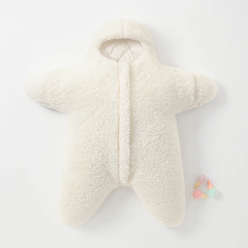 Keep baby cozy in this cute, cuddly starfish. Fleece for dual-layer comfort fully wraps baby from head to toe and is easy to open with no fiddly fastenings. Fuzzy plush outer for extra warmth keeps out chills and adds puffy padding so baby can sleep in comfort. Your little one will look even cuter in this outfit.
