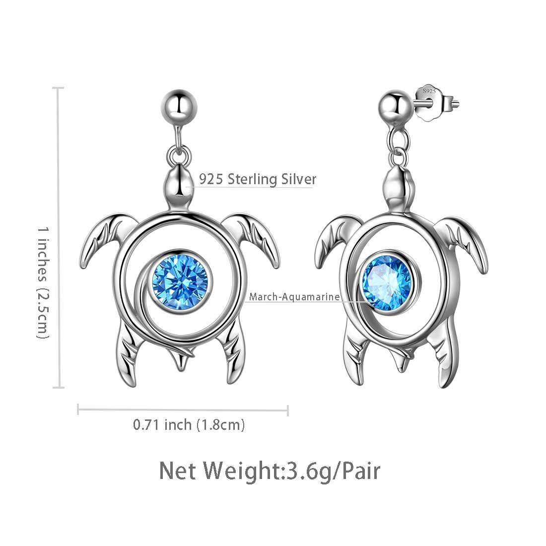 Tokyo Mart Turtle Birthstone March Aquamarine Earrings Dangle Women Girls Jewelry Birthday Gift Sterling Silver