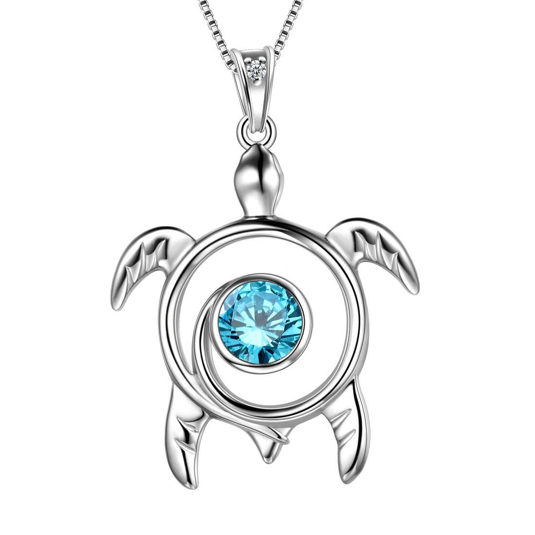 Tokyo Mart Turtle Birthstone March Aquamarine Necklace Pendant Women Girls Jewelry Birthday Gift