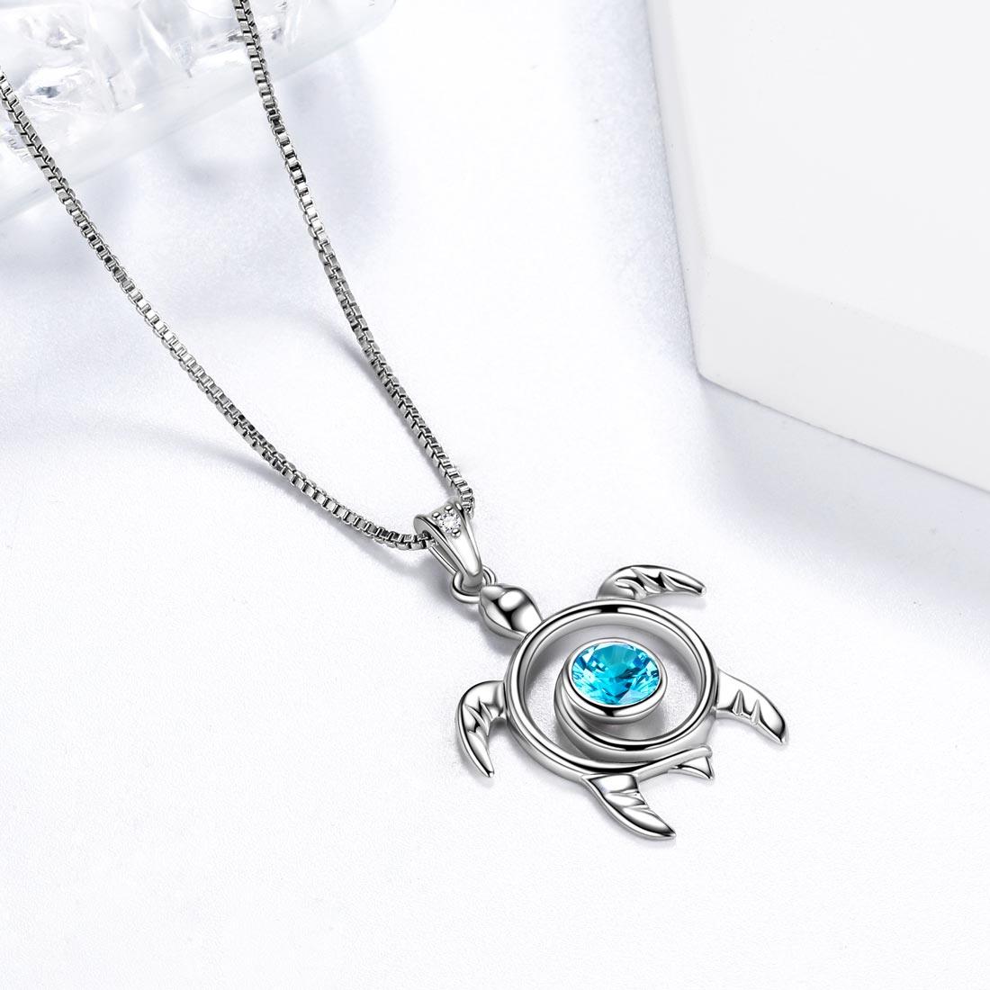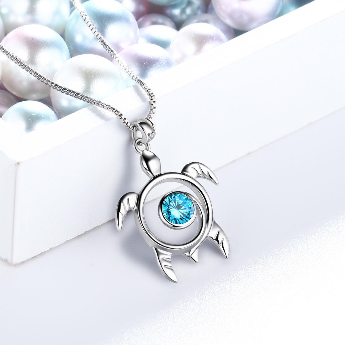 Aurora Tears Turtle March Birthstone Necklace for Women Girls