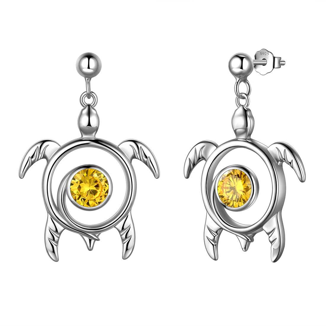 Tokyo Mart Turtle Birthstone November Citrine Earrings Dangle Women Girls Jewelry Birthday Gift Sterling Silver