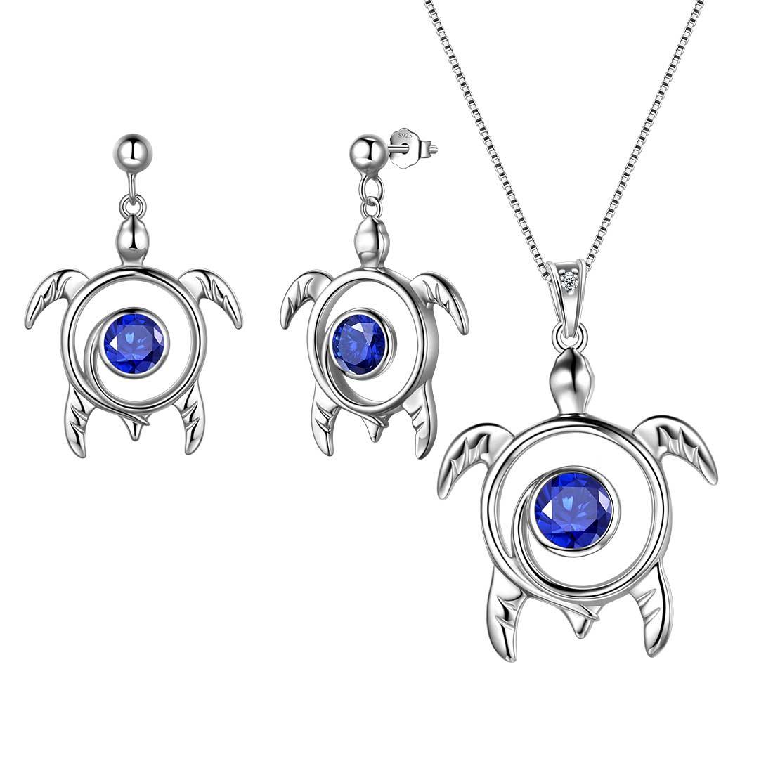 Tokyo Mart Turtle Birthstone September Sapphire Jewelry Set 3PCS Women Girls Birthday Gift