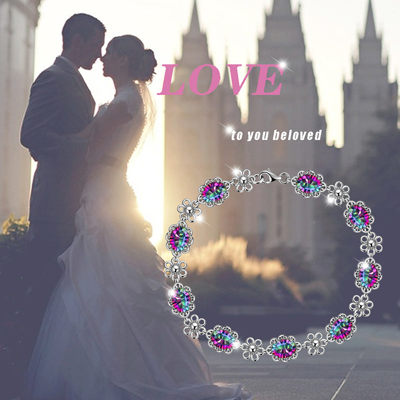 Tokyo Mart Women Vintage Tennis Bracelet Rainbow Mystic Topaz Jewelry Flower Oval Girls Gifts 925 Sterling Silver